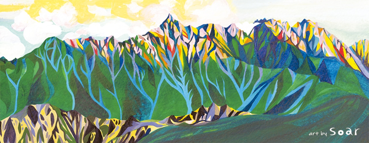 登山時や日常、様々な場面で北アルプスが楽しめます。