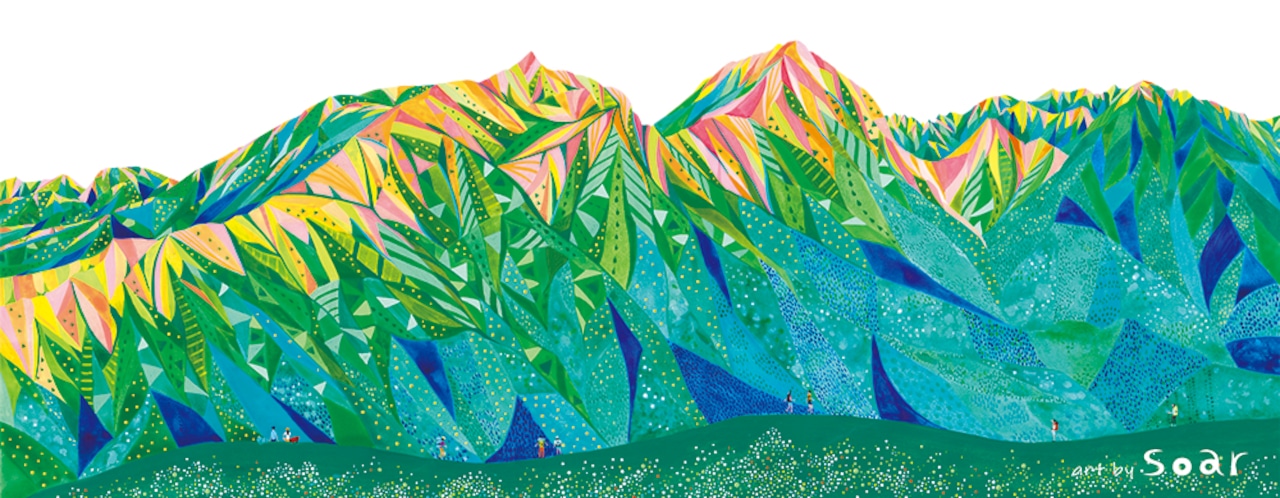 イラストは硫黄岳から見た横岳、赤岳、阿弥陀岳です。